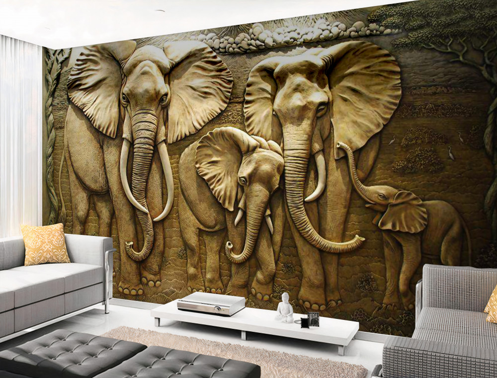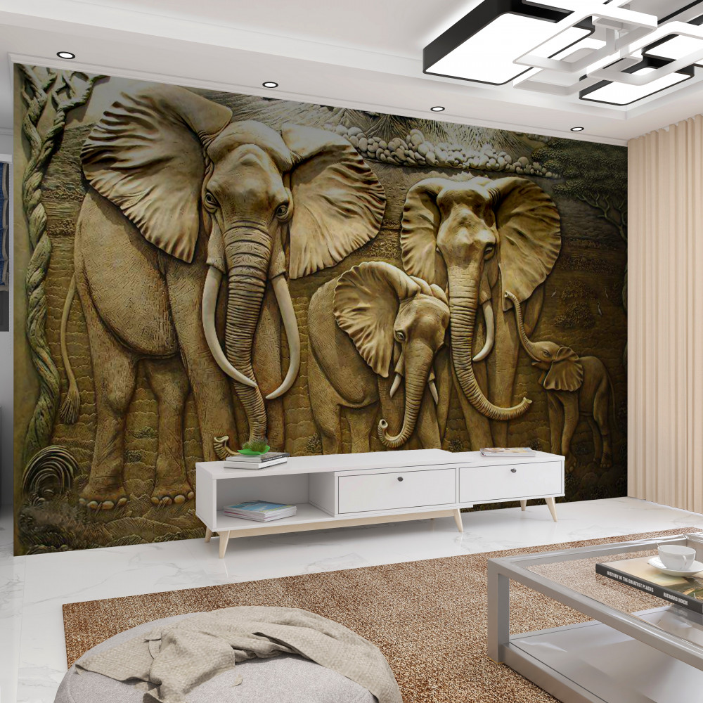 Tapeta Fototapeta rzeźba rodziny słoni (artykuł a91343 ) z kategorii Fototapety Zwierzęta