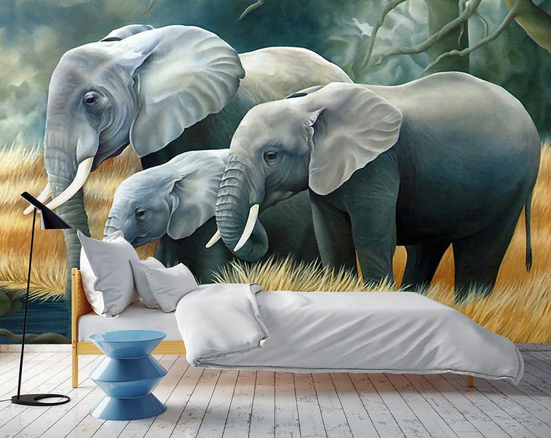 Tapeta Fototapeta sęki słonie woda (artykuł a629 ) z kategorii Fototapety Zwierzęta