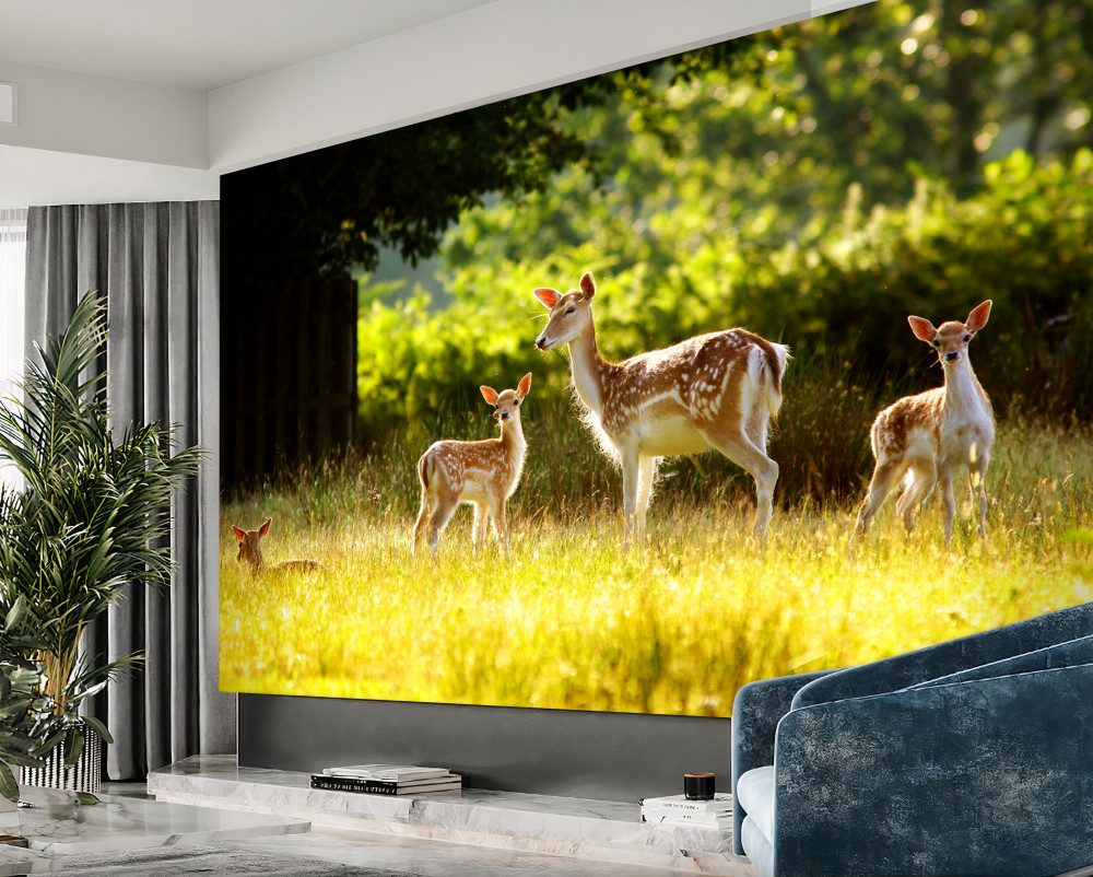 Tapeta Fototapeta stado jeleni sika spacerujących po łące (artykuł a92787 ) z kategorii Fototapety Zwierzęta