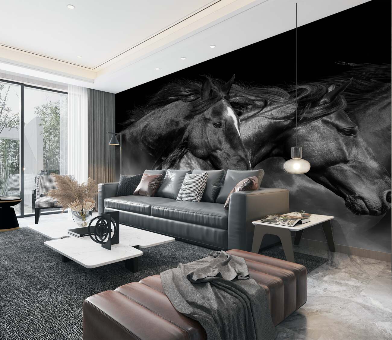 Tapeta Fototapeta Trzy czarne koni galopowe (artykuł a99257 ) z kategorii Fototapety Zwierzęta