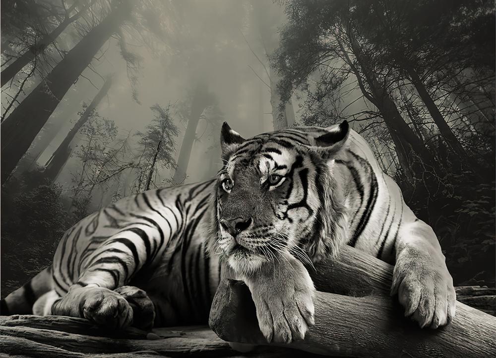 Tapeta Fototapeta tygrysowa mysticala czarno-biała (artykuł a2887 ) z kategorii Fototapety Zwierzęta
