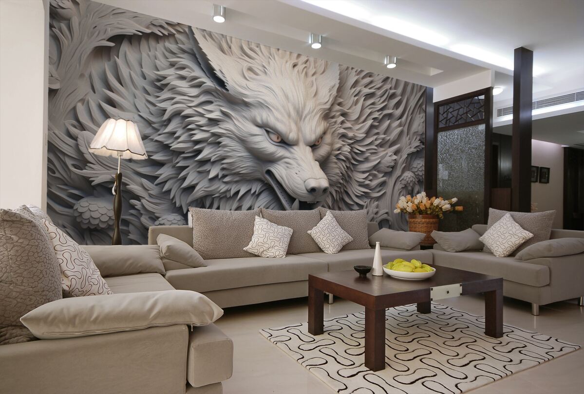 Tapeta Fototapeta wściekły ryk wilka trójwymiarowy obraz (artykuł a98505 ) z kategorii Fototapety Zwierzęta